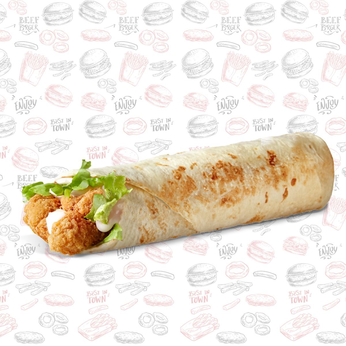 دجاج مقلي مقرمش بخبز التورتيلا مع خس, تيركي, جبنة شيدر و مايونيز